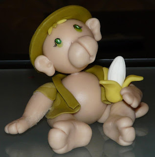 Aquí les dejo 2 nuevos animalitos, un hipopótamo de fantasía (con costuras simulando ser de peluche), y un monito con banana incluida.