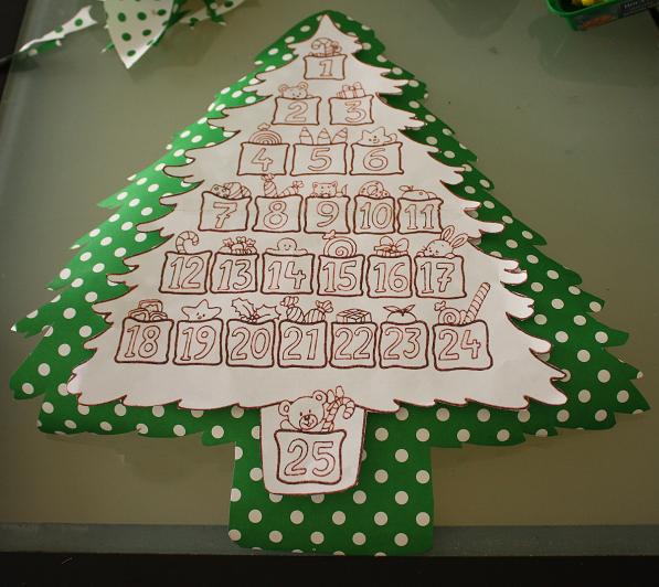 Ya ha pasado un año! Mañana nuevamente comenzamos el Calendario de Adviento. Como el año pasado, hice una adaptación del calendario religioso, o mejor dicho, he tomado la idea e hice una especie de cuenta regresiva hacia la Navidad. Esta vez quise hacer algo más pequeño, porque el del año pasado era enorme y al final estorbaba por todos lados. Pensé mucho en el diseño, miré decenas de imágenes en Google hasta que por fin di con esta. Así que hace una semana pusimos manos a la obra!