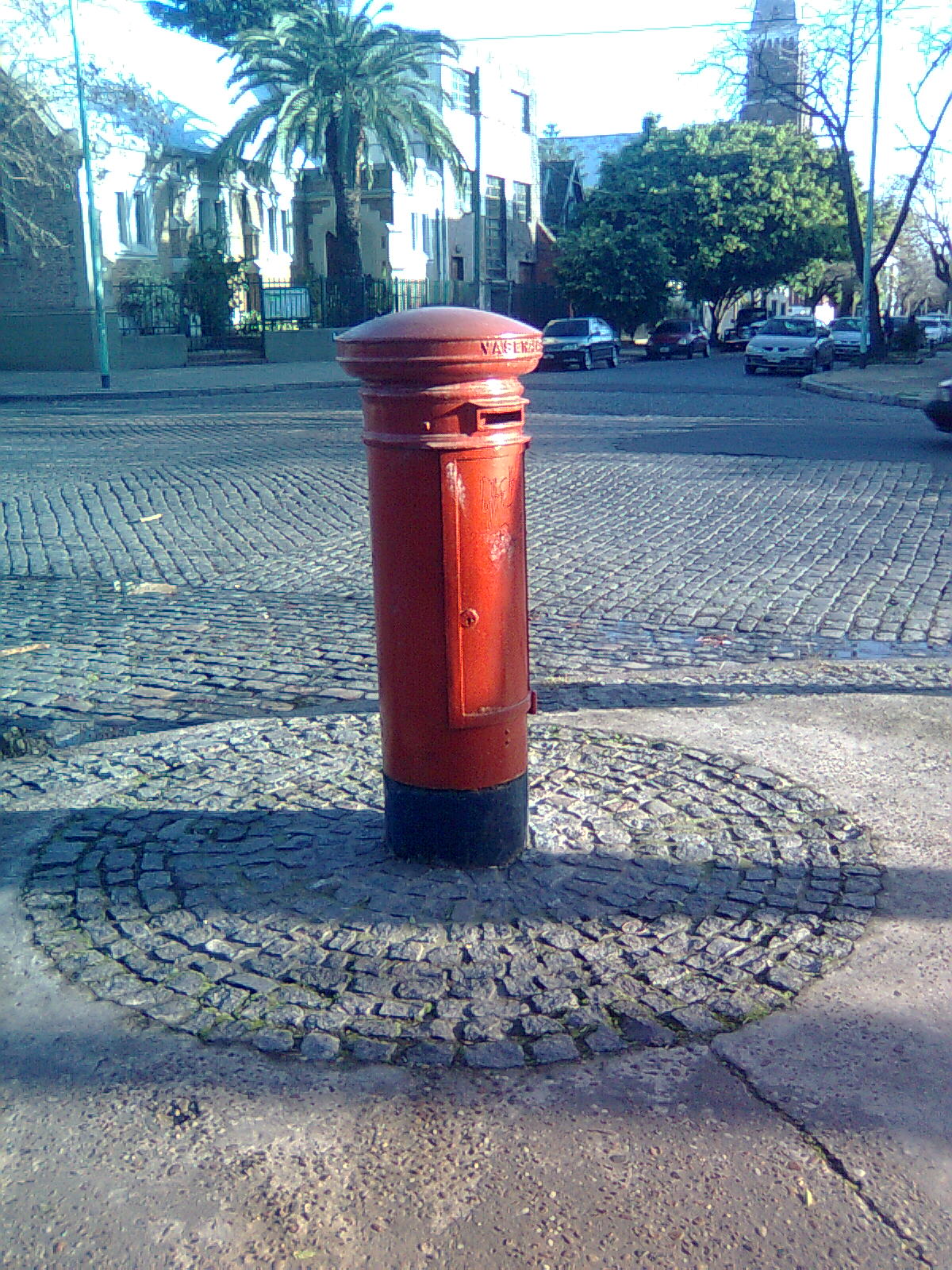 Buzón cerca de mi casa. Todavía quedan algunos en Buenos Aires. En el negocio teníamos uno de estos, cuando cerramos y se cerró la unidad postal se llevaron el buzón. Abrir ese buzón era toda una aventura, la gente parecía no entender que no era un cesto de basura. Me he encontrado palitos de helado, folletos, un recipiente donde había comida, un tetra de vino, paquetes de cigarrillos y hasta un preservativo!!! Ah, sí, también cartas :P