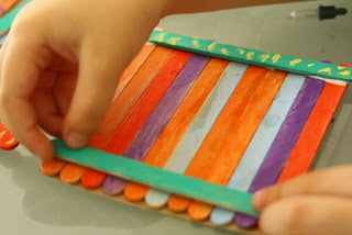 El 14 recibió unos palitos de helado, que pintamos de muchos colores con témperas, y después armamos esta cajita.