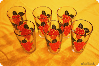 Estoy de vuelta por aquí para mostrarles mis lindos vasitos retros que le regaló a mi marido su abuela, y que rápidamente me apropié :)